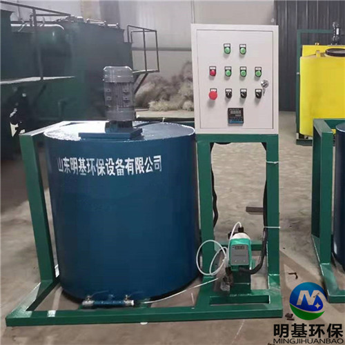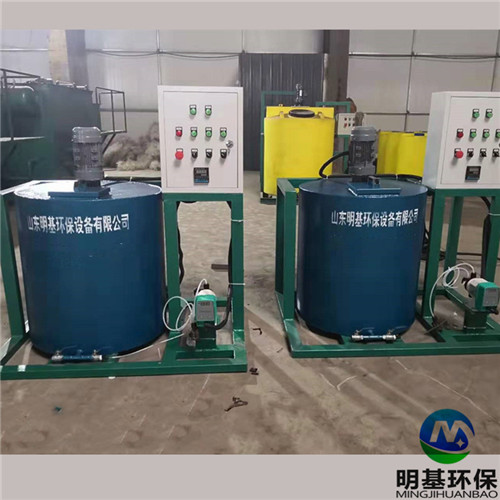 加药装置,采用的是机电一体化结构形式,从安装上可分为固定式和移动式(推车式),每种形式的加药装置均配有搅拌系统、加药系统和自动控制系统。几个固定式撬装可组合成一个整体,加上变频控制系统,可实现就地控制、远程自动控制、手动和自动相互转换加药。具有结构紧凑,体积小、噪音低、工作平稳、安装简单、操作使用方便等优点。