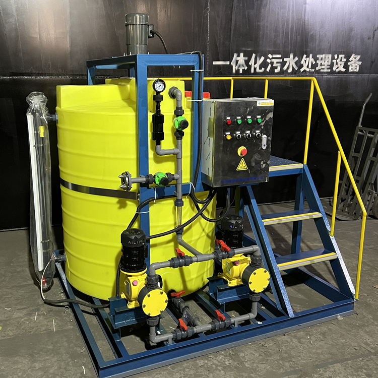 循环水加药装置结构相对简单、安装使用便捷。它主要由计量箱(药剂贮罐)、计量泵(加药泵)、自动控制系统、连接管路等组成。除部分加药管路外,这些设备通常都集中装配在一个加药间内,循环水全自动加药装置将计量箱、计量泵、自动控制系统一体化, 即安装在一个底座上,主要用于火力发电、石油、化工等行业炉水处理、原水处理以及废水处理。
