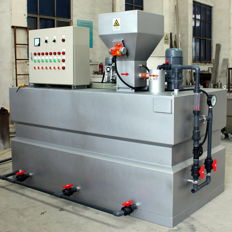 ●溶解槽内注入清水,启动搅拌器(多级桨叶设计),利用机械搅拌或射流混合器使粉体快速分散、润湿,避免结团。部分装置采用分级溶解(如三槽一体结构),通过多个串联槽体逐步完成溶解与熟化。